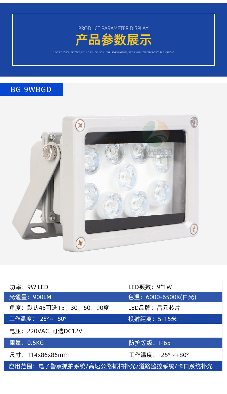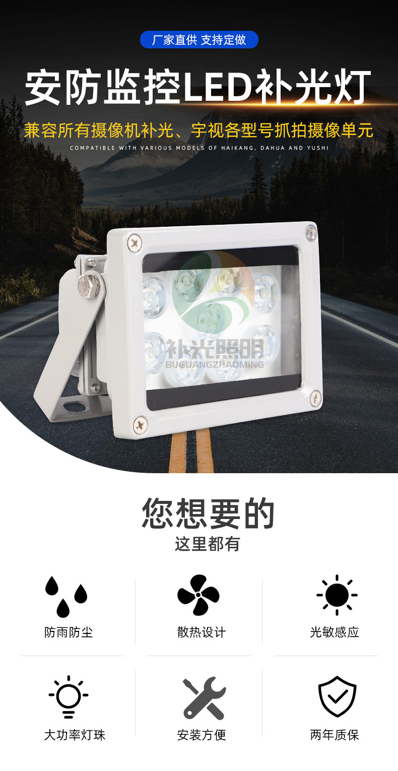 led監(jiān)控補(bǔ)光燈停車場(chǎng)出入口車牌識(shí)別補(bǔ)光燈攝像頭輔助燈戶外防水