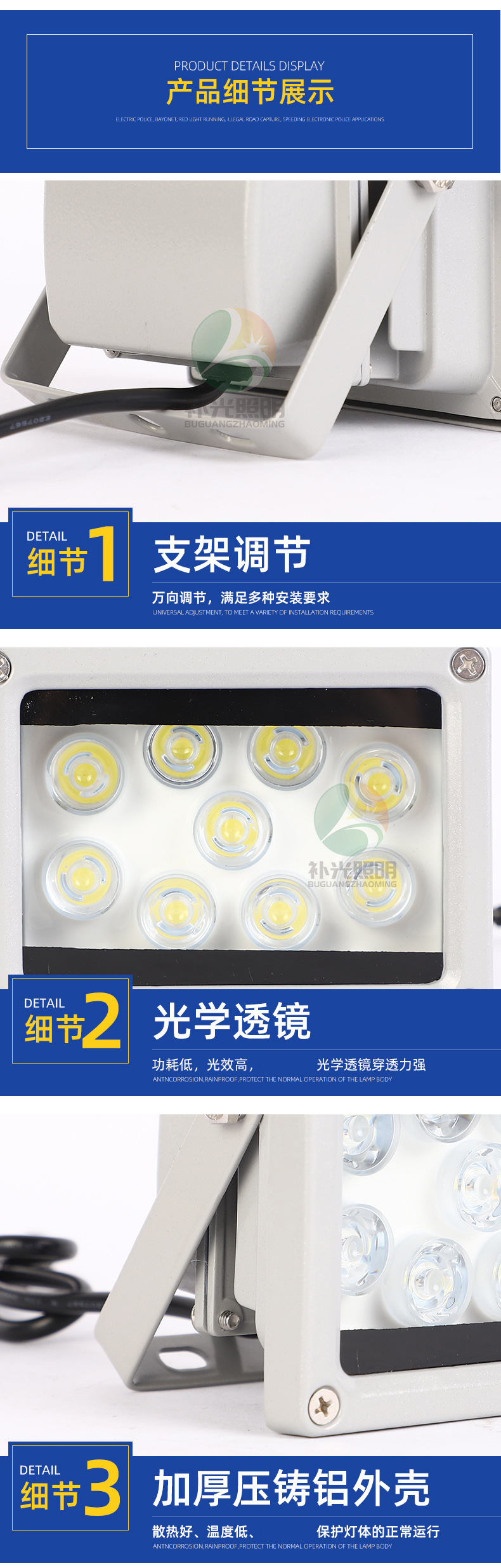 中山市補(bǔ)光照明有限公司是一家專業(yè)中山LED補(bǔ)光燈產(chǎn)品的研發(fā)、生產(chǎn)和銷售,主要產(chǎn)品有:中山LED補(bǔ)光燈、LED頻閃燈、LED閃光燈、LED爆閃燈等,產(chǎn)品主要應(yīng)用于智能交通監(jiān)控戶外亮化、道路照明、戶外景觀照明等多種領(lǐng)域。